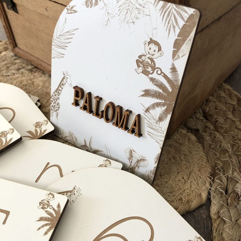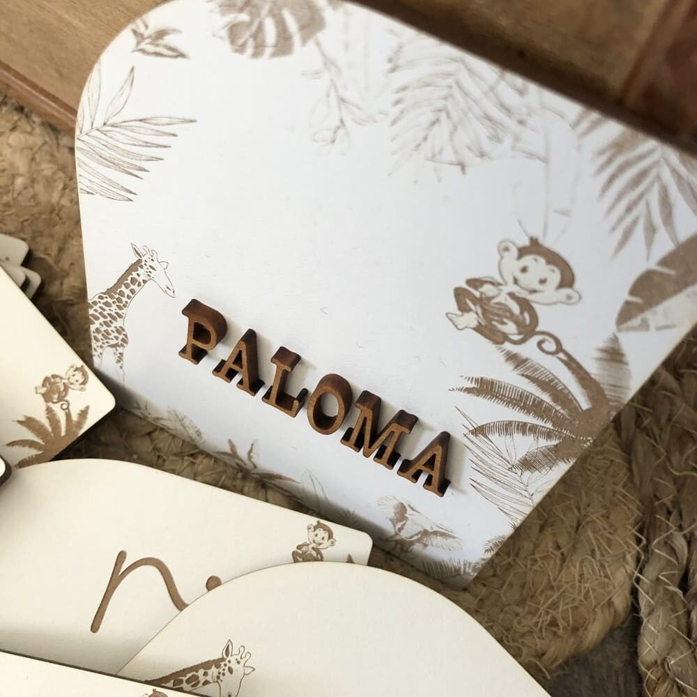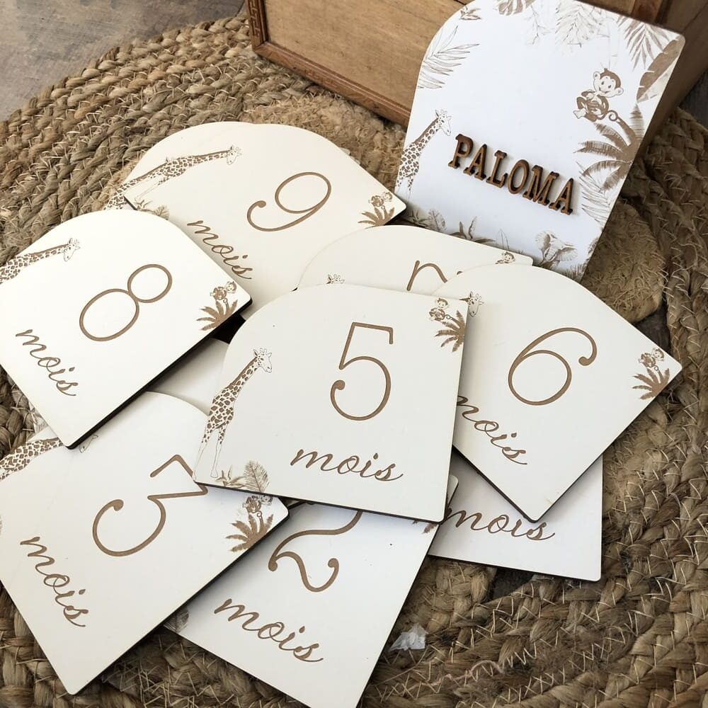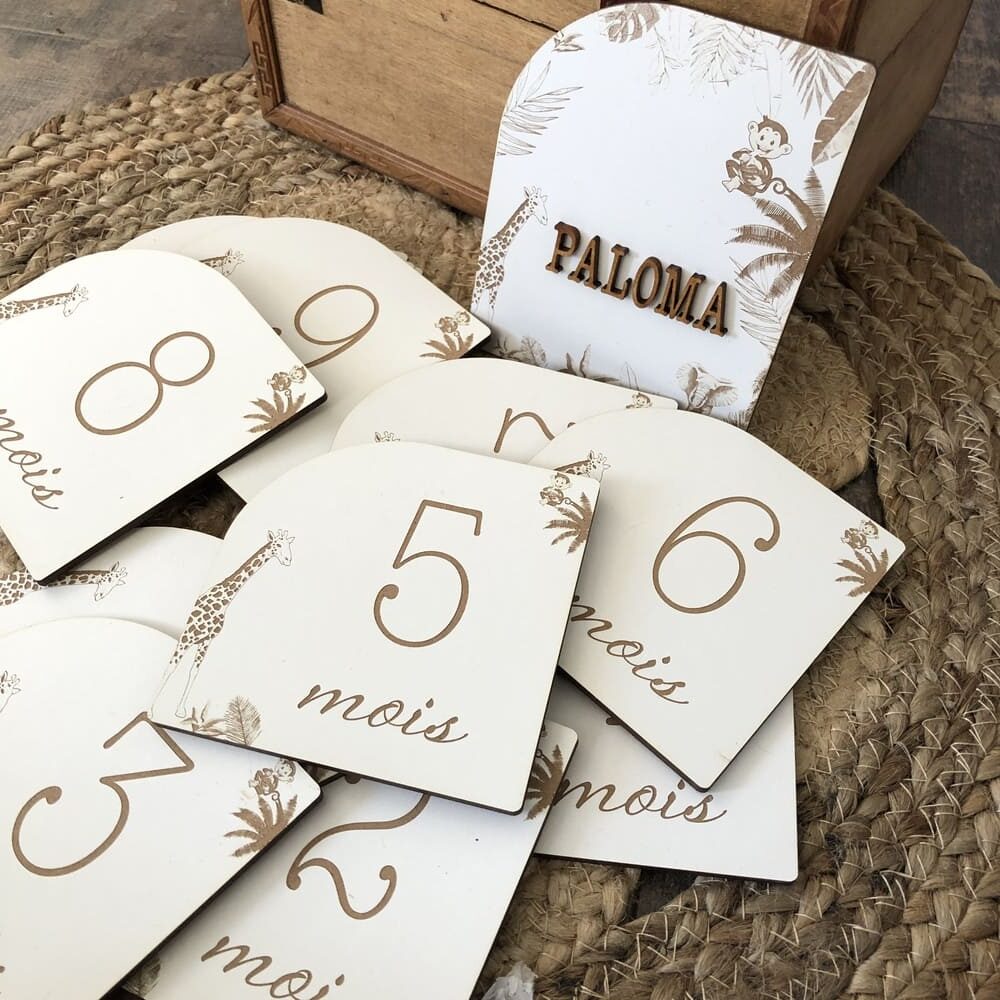 Immortalisez des souvenirs uniques avec ces cartes étapes en bois inspirées de la savane, parfaites pour marquer les 12 premiers mois de bébé.