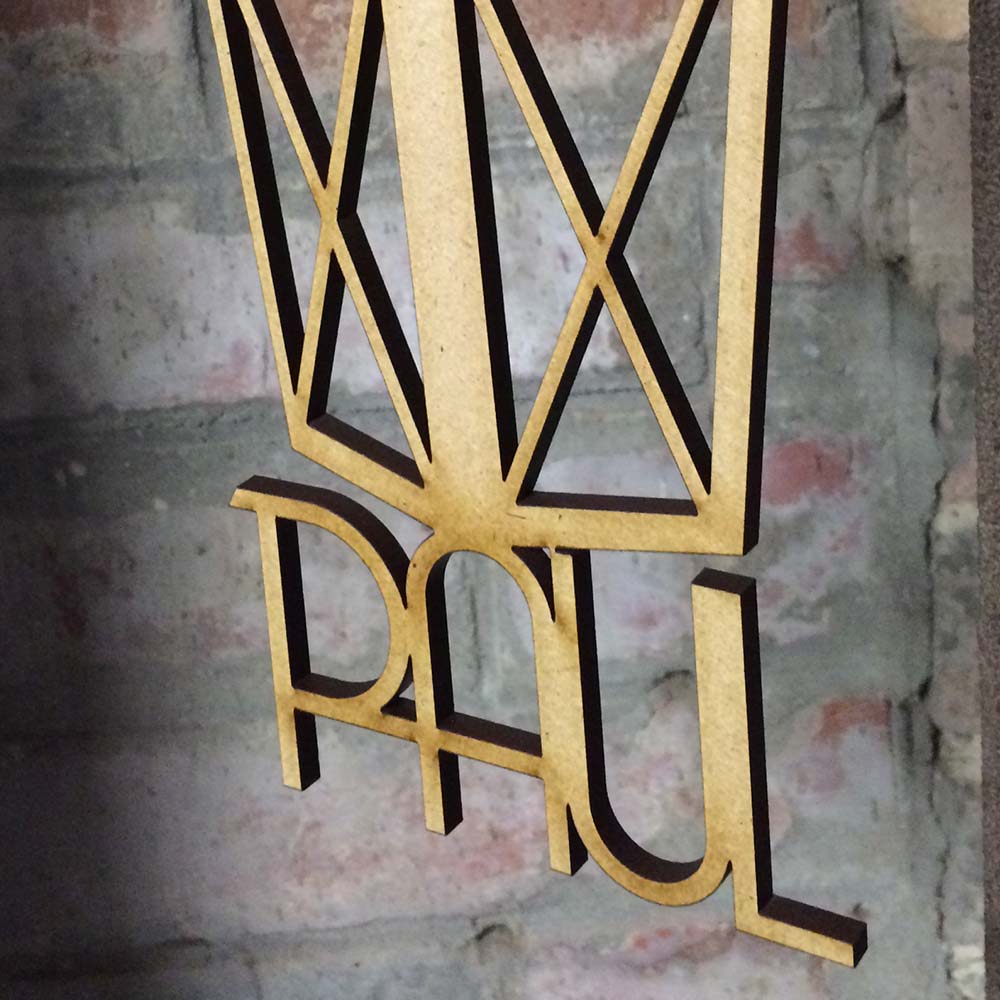 Décoration murale en bois, représentant une lanterne de mineur.