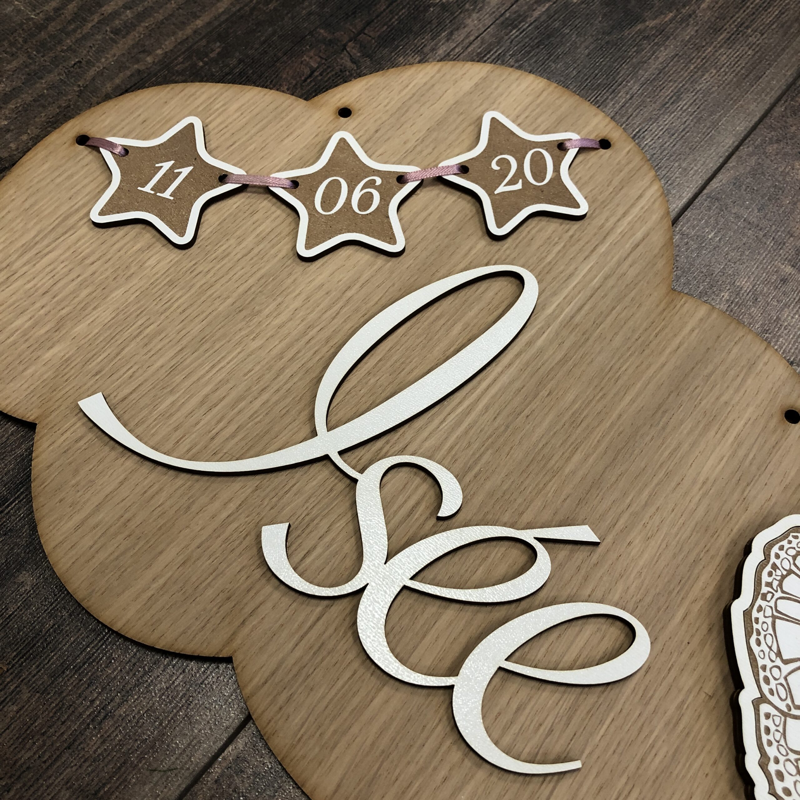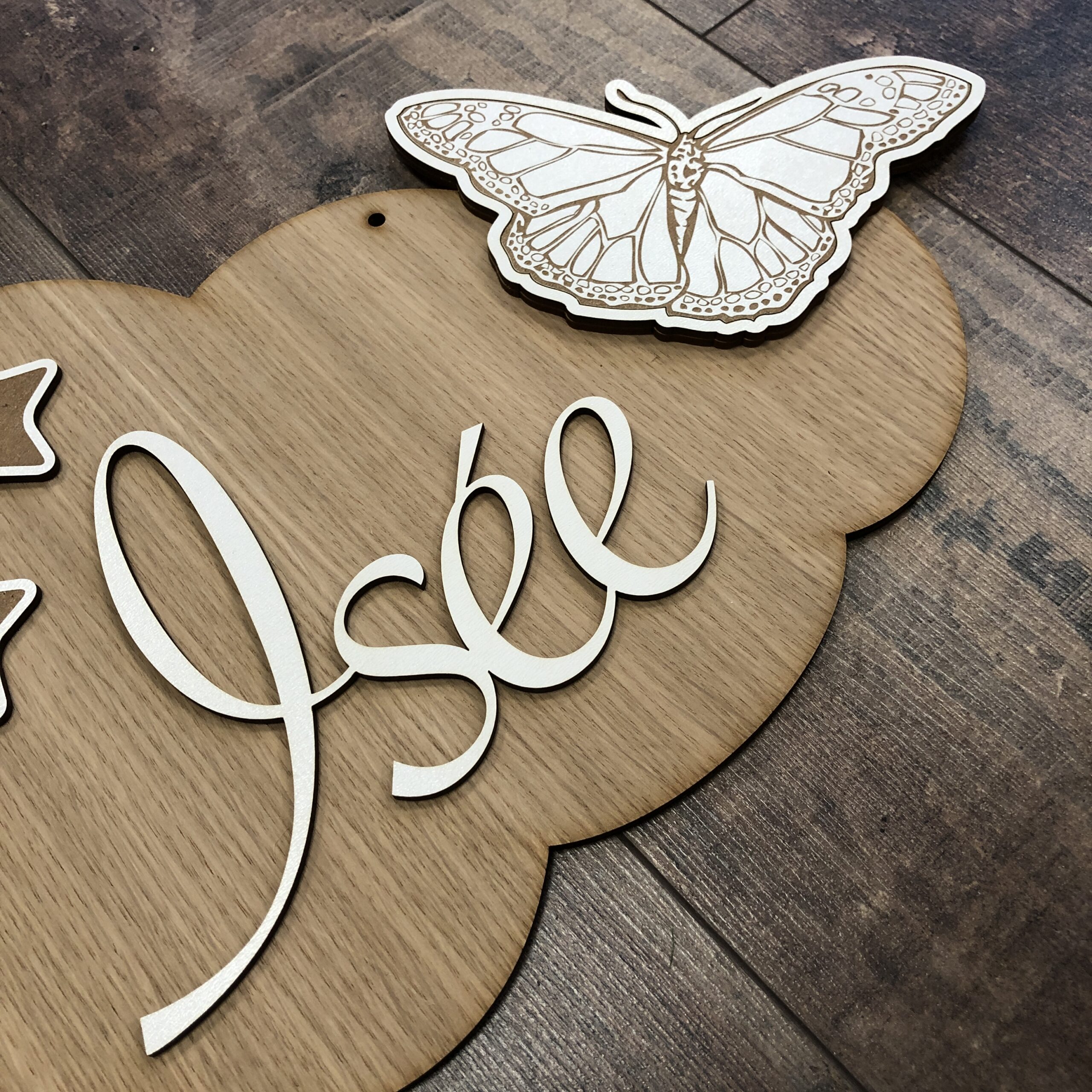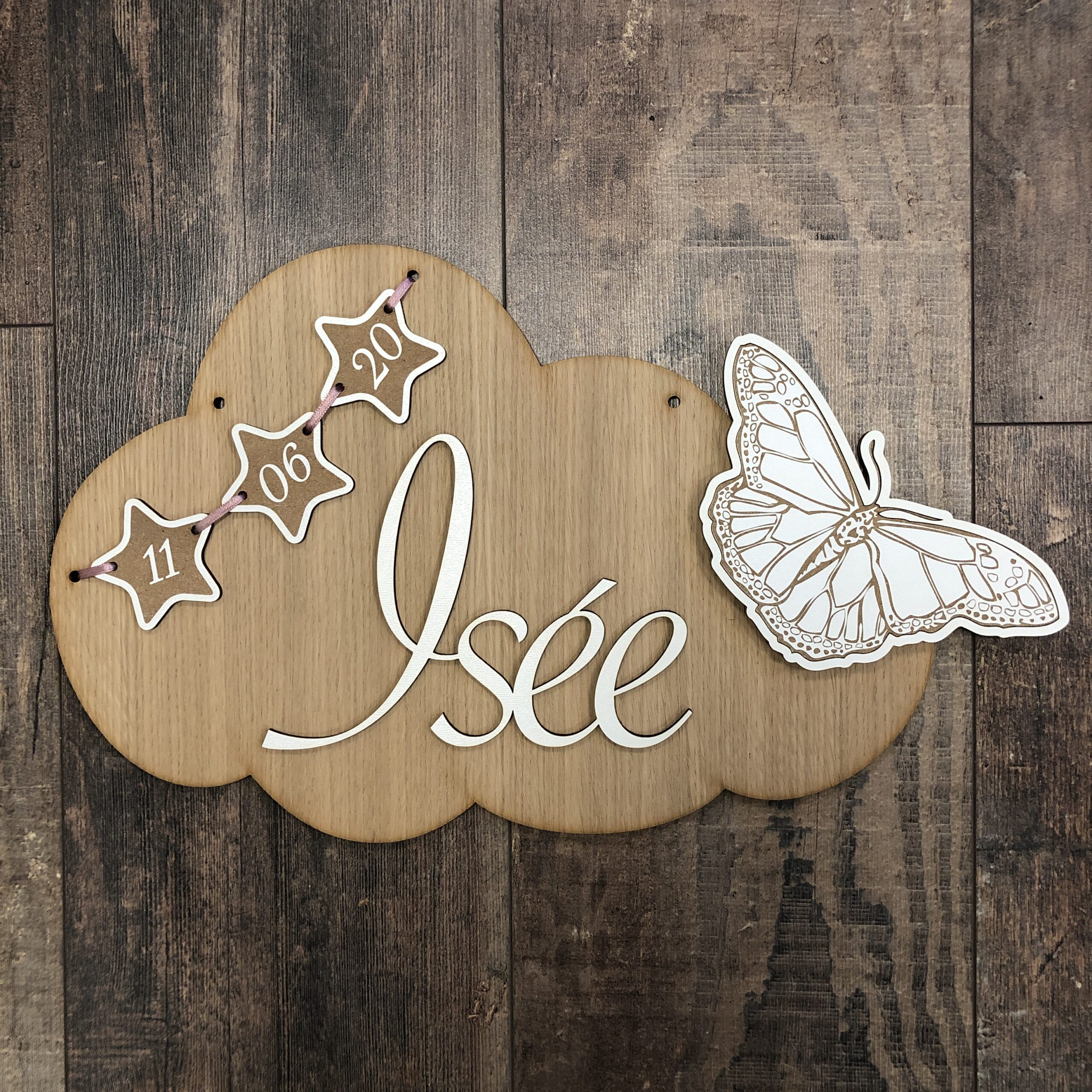 -bois (médium laqué blanc 3mm) pour le papillon, le prénom et les étoiles