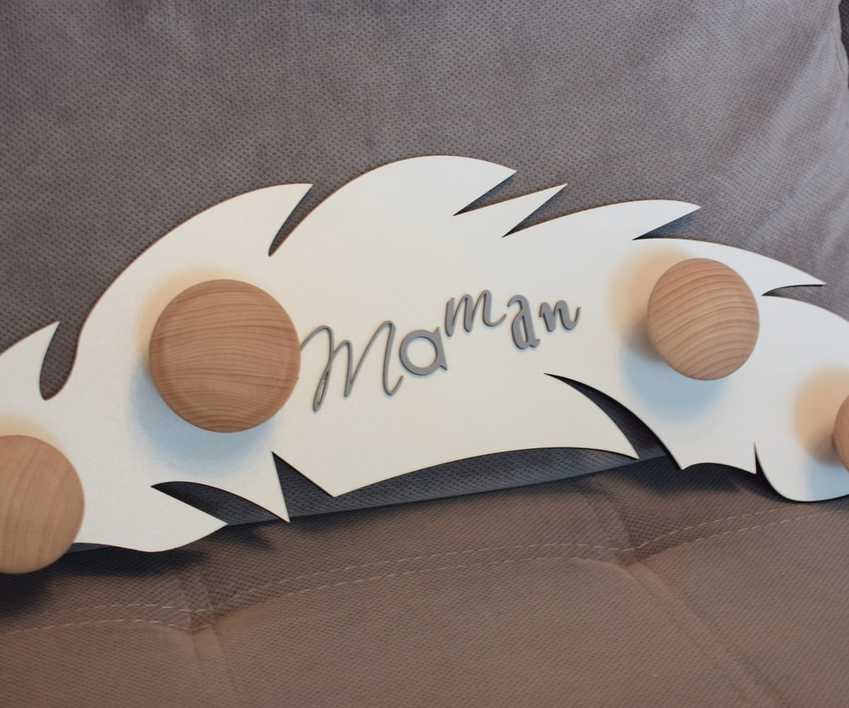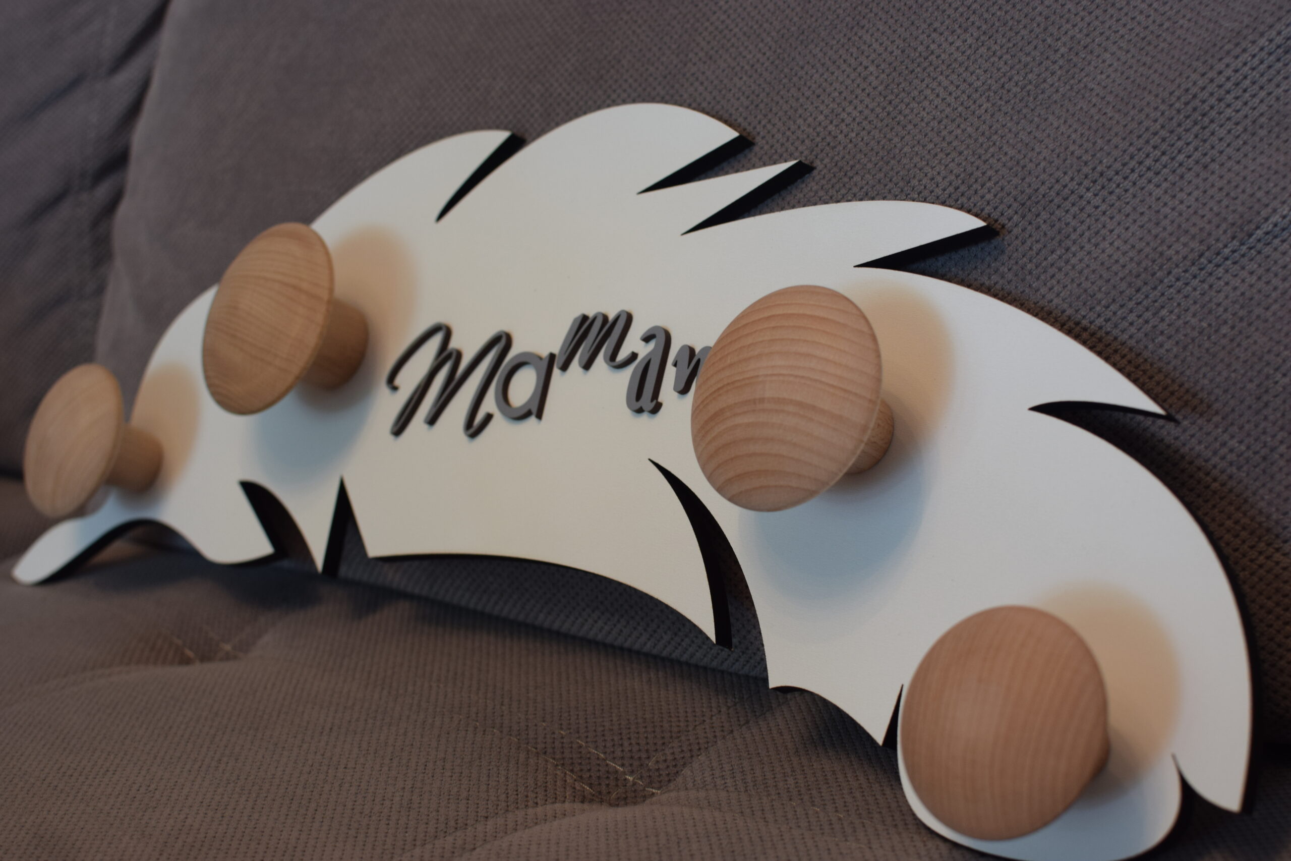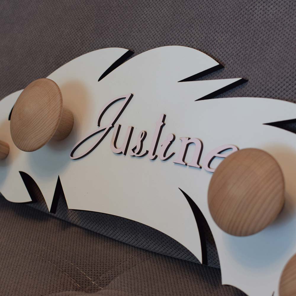 Que ce soit dans votre entrée ou dans la chambre de votre enfant, ce porte-manteau en bois allie fonctionnalité et esthétique avec son prénom personnalisé en relief.