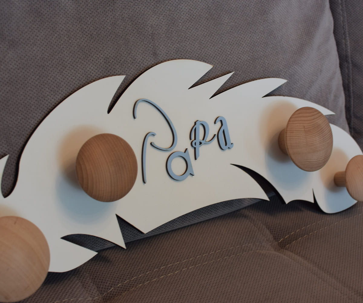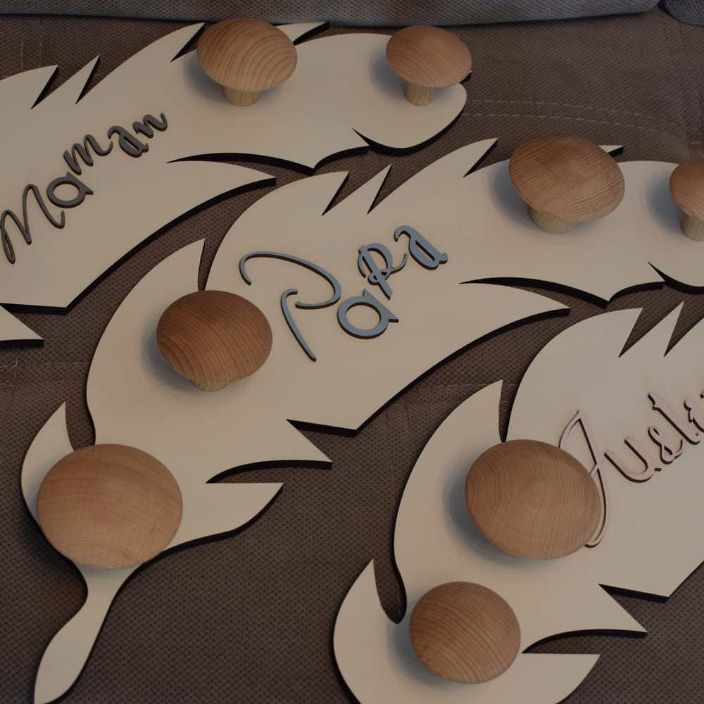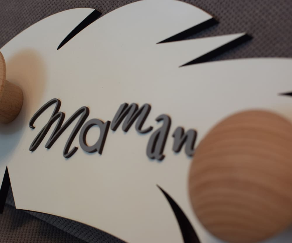 Que ce soit dans votre entrée ou dans la chambre de votre enfant, ce porte-manteau en bois allie fonctionnalité et esthétique avec son prénom personnalisé en relief.