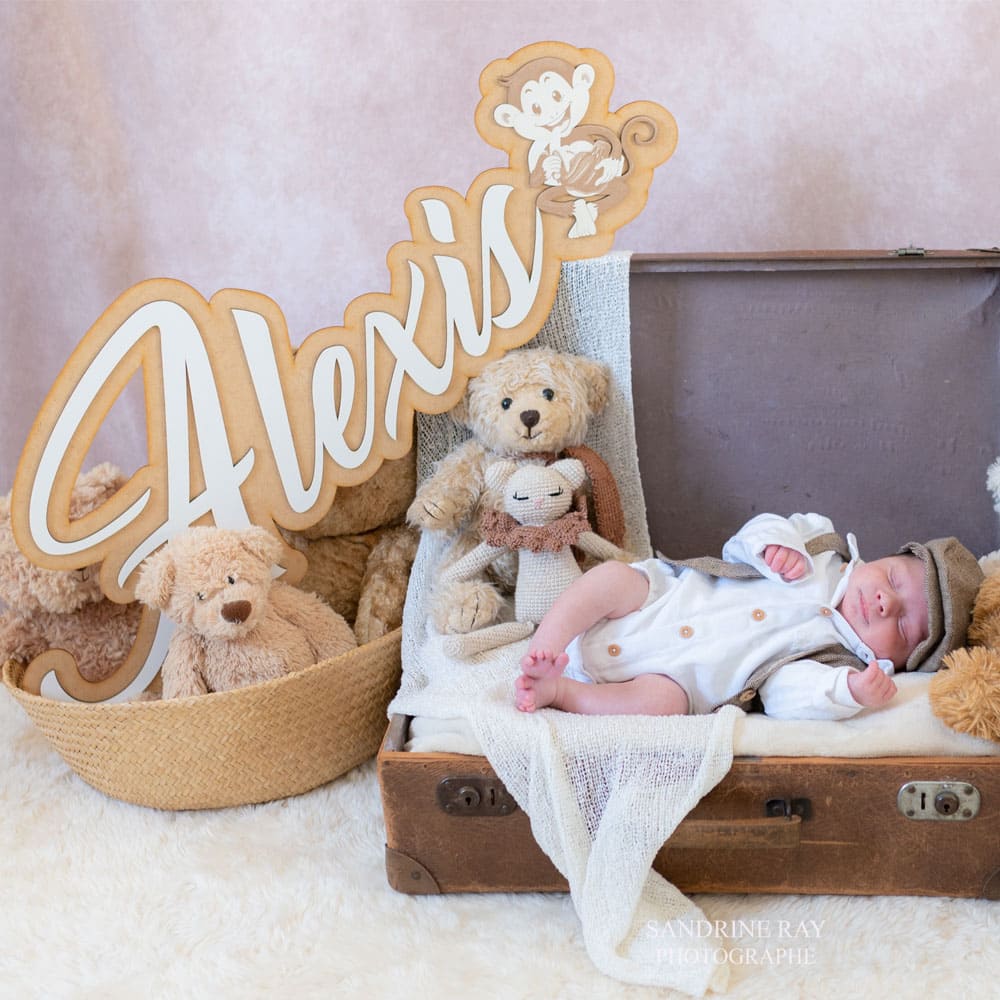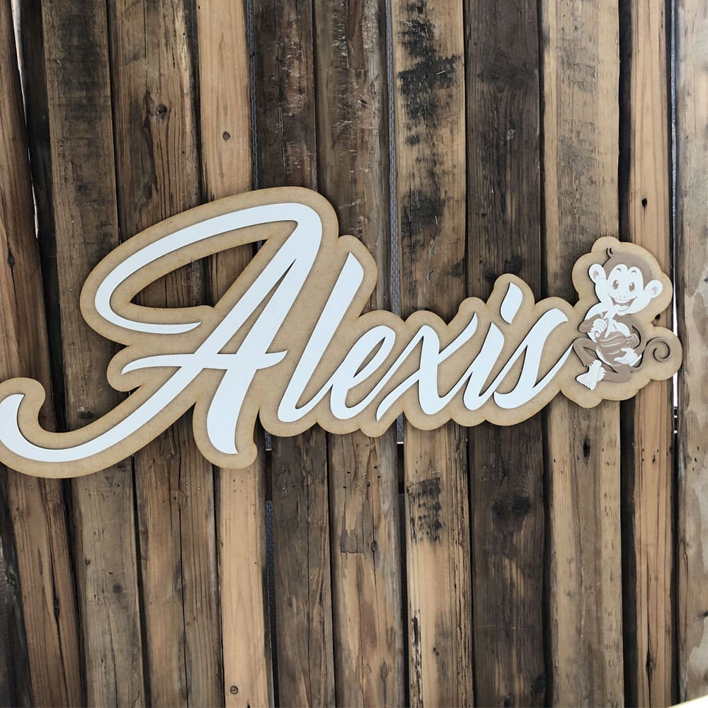 -bois (médium laqué blanc 3mm) pour le prénom et le singe dessus